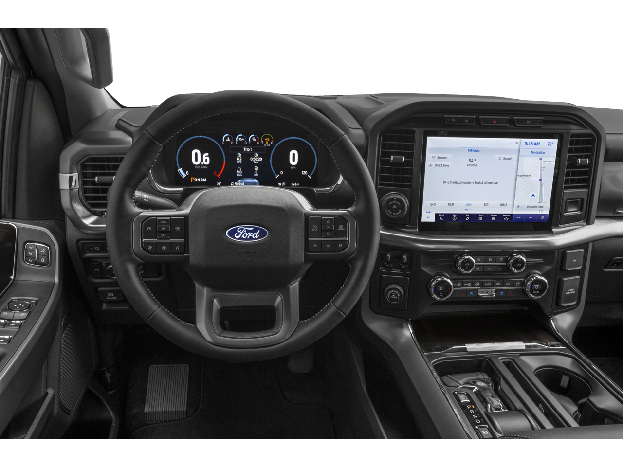 Designed with both work and play in mind, the F-150 Lariat boasts a spacious and versatile cabin, with heated and ventilated power-adjustable front seats, a power tilt/telescoping steering column with memory, and an onboard 400W outlet to power your tools or devices. The Trailer Tow Package, complete with an integrated brake controller and Pro Trailer Backup Assist, ensures effortless towing and maneuverability.